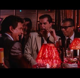 One iconic scene in *Goodfellas* is the "Funny how?" scene. Tommy DeVito (Joe Pesci) pretends to be offended when Henry Hill (Ray Liotta) calls him funny, escalating tension as Tommy acts dangerously unpredictable, making everyone nervous. Just when it seems he might explode, Tommy reveals he's joking, showcasing both his dark humor and violent unpredictability. This scene brilliantly captures the volatile nature of mob life.